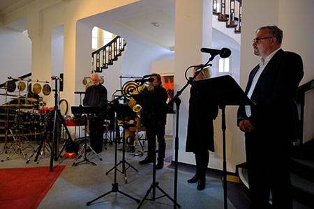 „Ein wahres Elend, der verdammte Krieg“ ist der Titel, den das Forum Gestaltung den Gedenk-konzerten gab, mit denen es jährlich wiederkehrend an die zwei unvorstellbaren Zerstörungen von 1631 und 1945 und an das Leid der vielen Opfer erinnert. Warnfried Altmann am Saxophon, Hermann Naehring am Schlagwerk, die Hamburger Sopranistin Johanna Mohr und der Schauspieler Oliver Breite prägten den Abend unter Leitung von Norbert Pohlmann. Einfühlsam bis expressiv gingen Sie auf das Geschehen vor 391 Jahren ein, ohne gegenwärtige Bezüge auszusparen, für die nicht zuletzt auch Mohamad Issa steht, dessen Gedichte bereits am 16. Januar beim Erinnern einer anderen Zerstörung zu hören waren. Im Anschluss an das Gedenkkonzert wurde das Kuratorium Friedensforum Johanniskirche, eine Initiative aus Bürgerschaft, Kultur, Universität, und städtischen Einrichtungen, erstmals durch Dr. Rüdiger Koch, PD Dr. Christoph Volkmar u. a. der Öffentlichkeit vorgestellt.